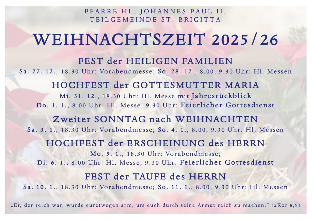 oder in der Pfarrkanzlei (01/ 3327452, pfarre.jp2@katholischekirche.at)